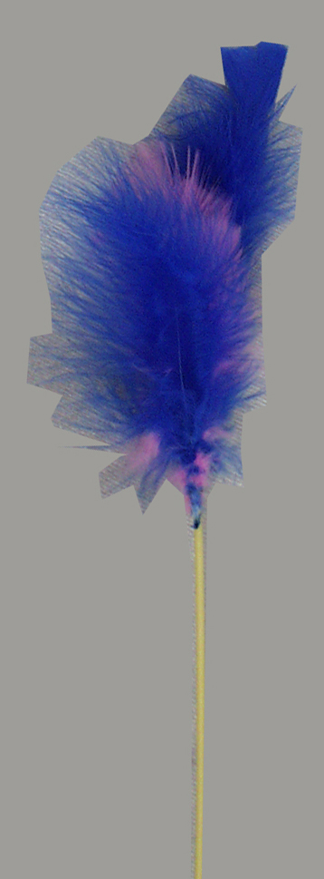 1A Neckwedel, ca. 14cm Ø und 14cm hoch, an 40cm langem Stab, in schwarz, weiß, rot, orange, gelb, gelb-gold, blau, türkis, rosa, pink, dunkelpink, flieder, lila, hellgrün und tannengrün, es sind immer zwei Farben (Farbnuancen) auf einem Neckwedel!