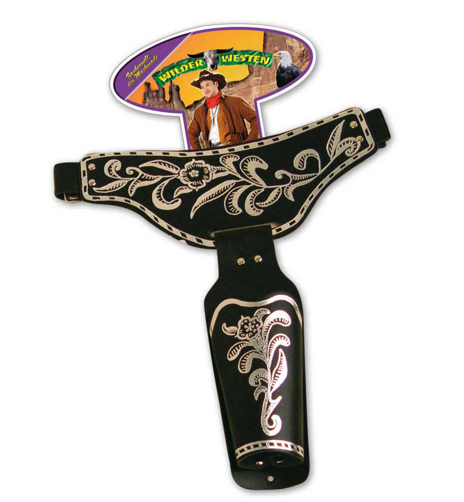 Schwarzer Revolvergürtel für Erwachsene mit 1 Tasche, ca. 115cm lang